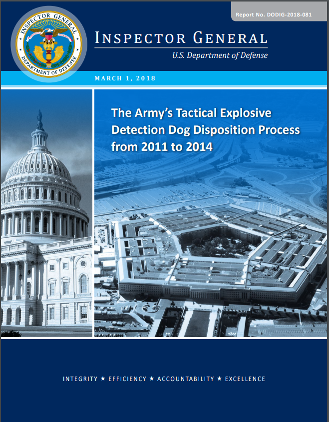 Whereas the August 2016 report stated that, in 2014, the Army disposed of 229 tactical explosive detection dogs;